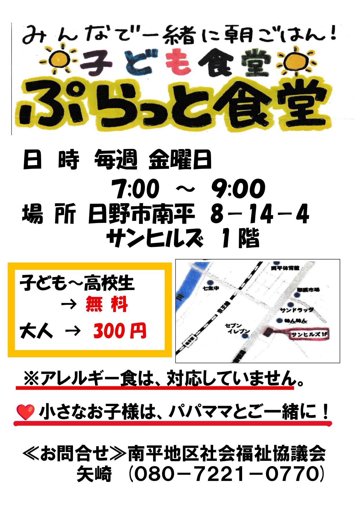 南平駅から徒歩7分。親と子どものための食堂「ぷらっと食堂」があります。 お父さ…