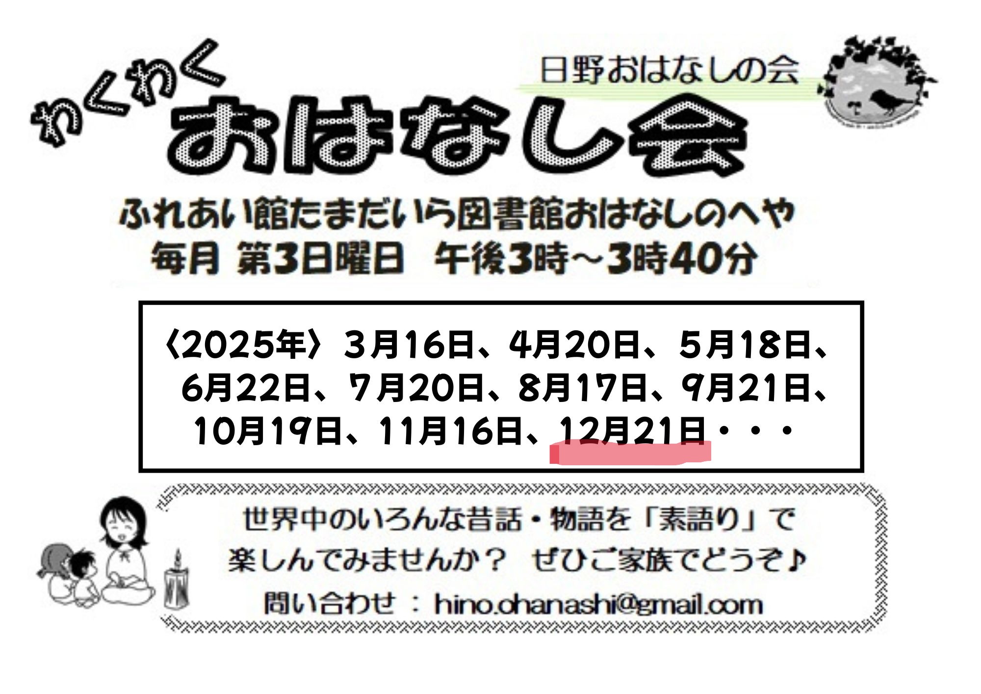今回はクリスマスや冬の季節のおはなし等もあります。ぜひおいでください。
