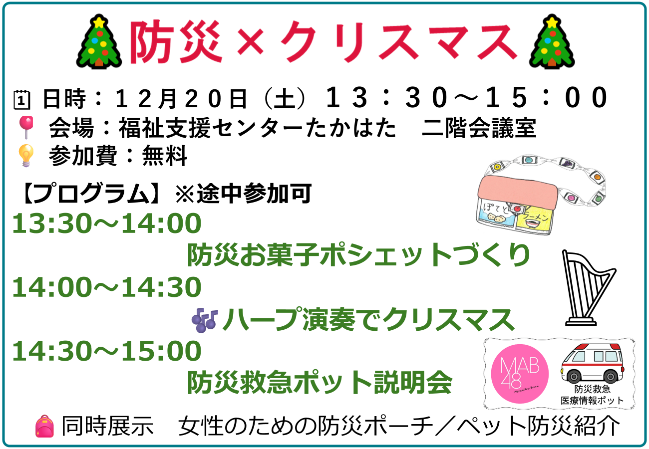 防災×クリスマス ~防災のそなえとハープの音色~ 南新井ぼうさいフェスで予定し…