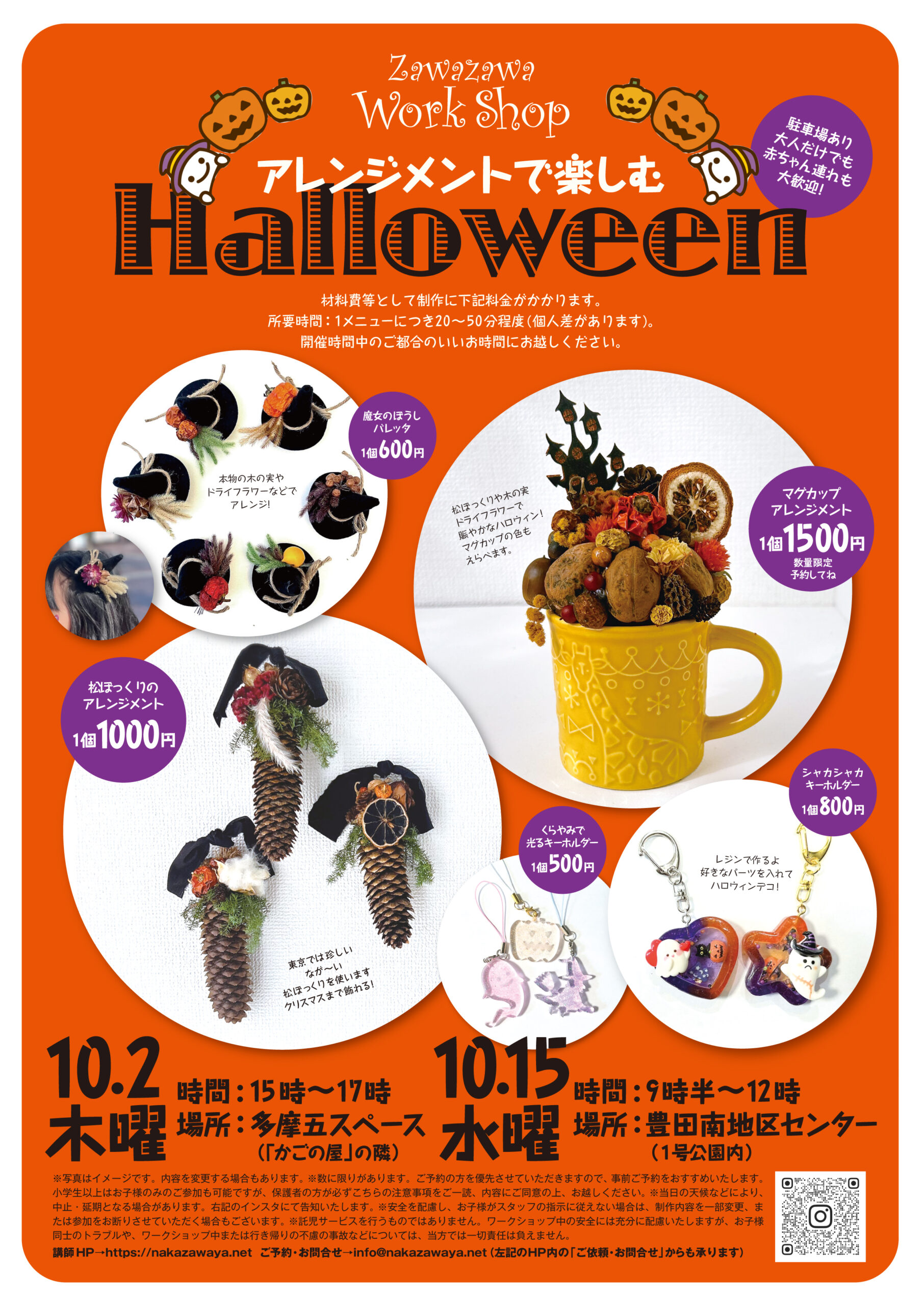 ハロウィン気分の盛り上がるメニューいっぱいのワークショップ、ぜひお越しください。