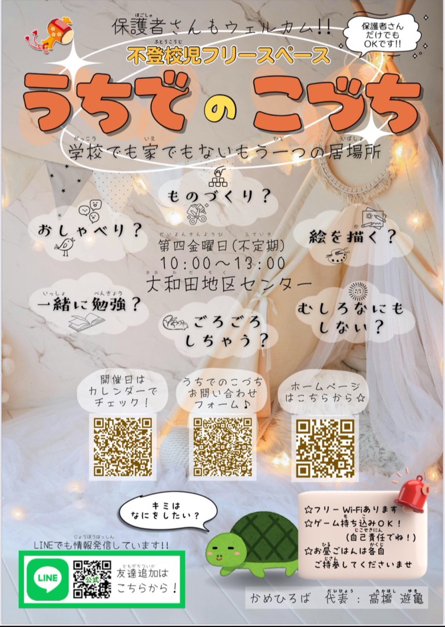 学校に行きづらい、でもいつも家にいるのも…そんな時は、皆でわいわい遊んだり、ご飯を食べたりしてみませんか。
