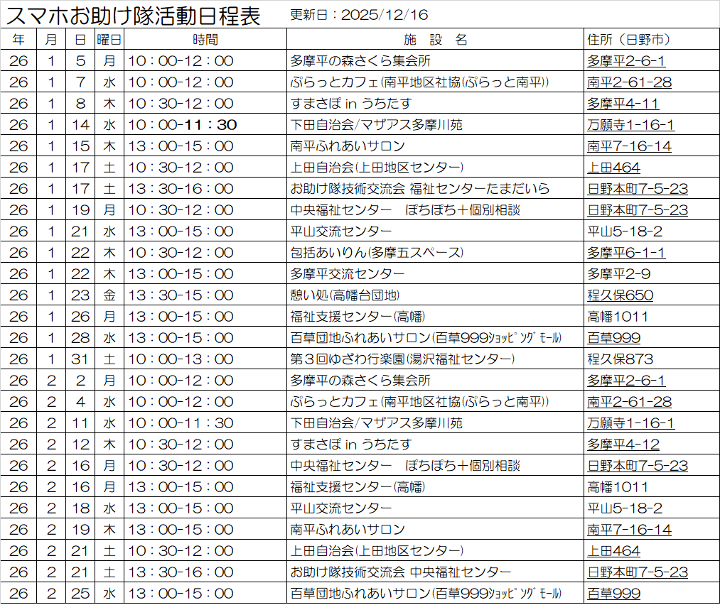 日野市民会館・七生公会堂・とよだ市民ギャラリーにてイベント・講座など開催していま…